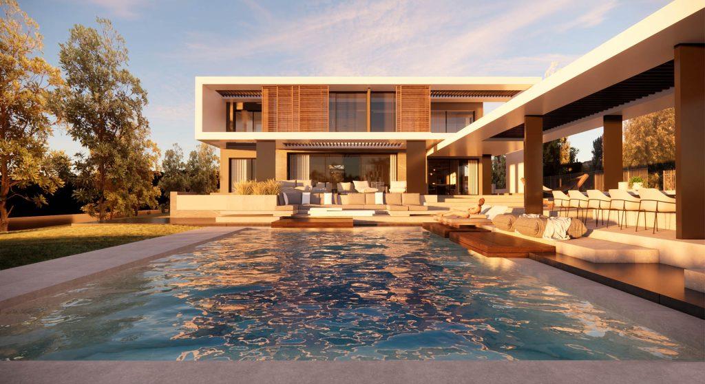 This stunning residence is a true synthesis of architectural beauty, seamlessly blending exquisite interior design with breathtaking exterior spaces. The two-fold design of the building provides both functional everyday living spaces on the ground floor and private, luxurious retreats on the first floor.