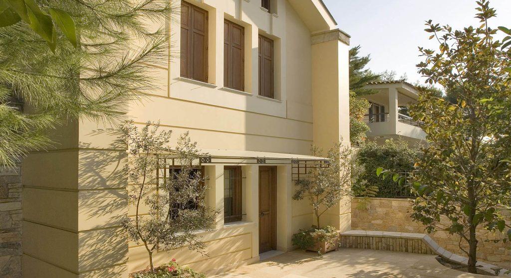The building’s composition and integration into the surrounding environment were given special attention, ensuring the best possible functionality and aesthetics. The building has a staggered volume structure, with three gradually receding P-shaped volumes from Dionysou Street to the right boundary of the plot, respecting the small scale of the neighborhood while framing and highlighting the existing palm tree in the left corner of the plot.